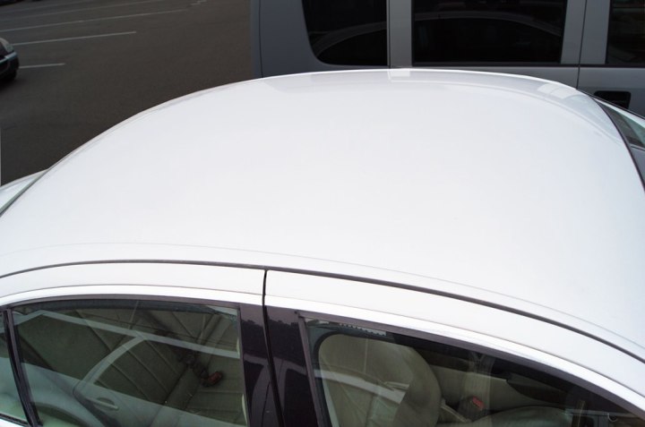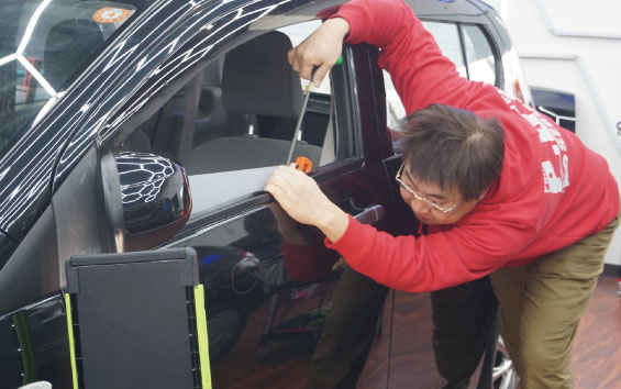 雹害の車もデントリペアで修復できます。内貼りの脱着などかなり手間のかかるパネルで作業時間は比較的長くかかります。鈑金塗装の場合、補修歴や事故歴がついてしまう部分ですのでデントリペアはとても有効な修復手段です。