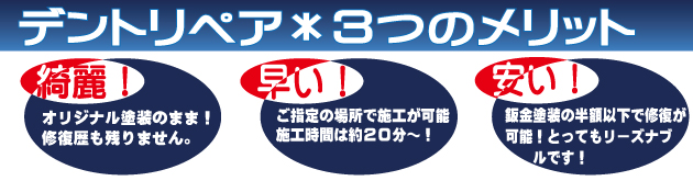 デントリペアの技術であなたの愛車のヘコミを 綺麗に!早く!安く!修理いたします。